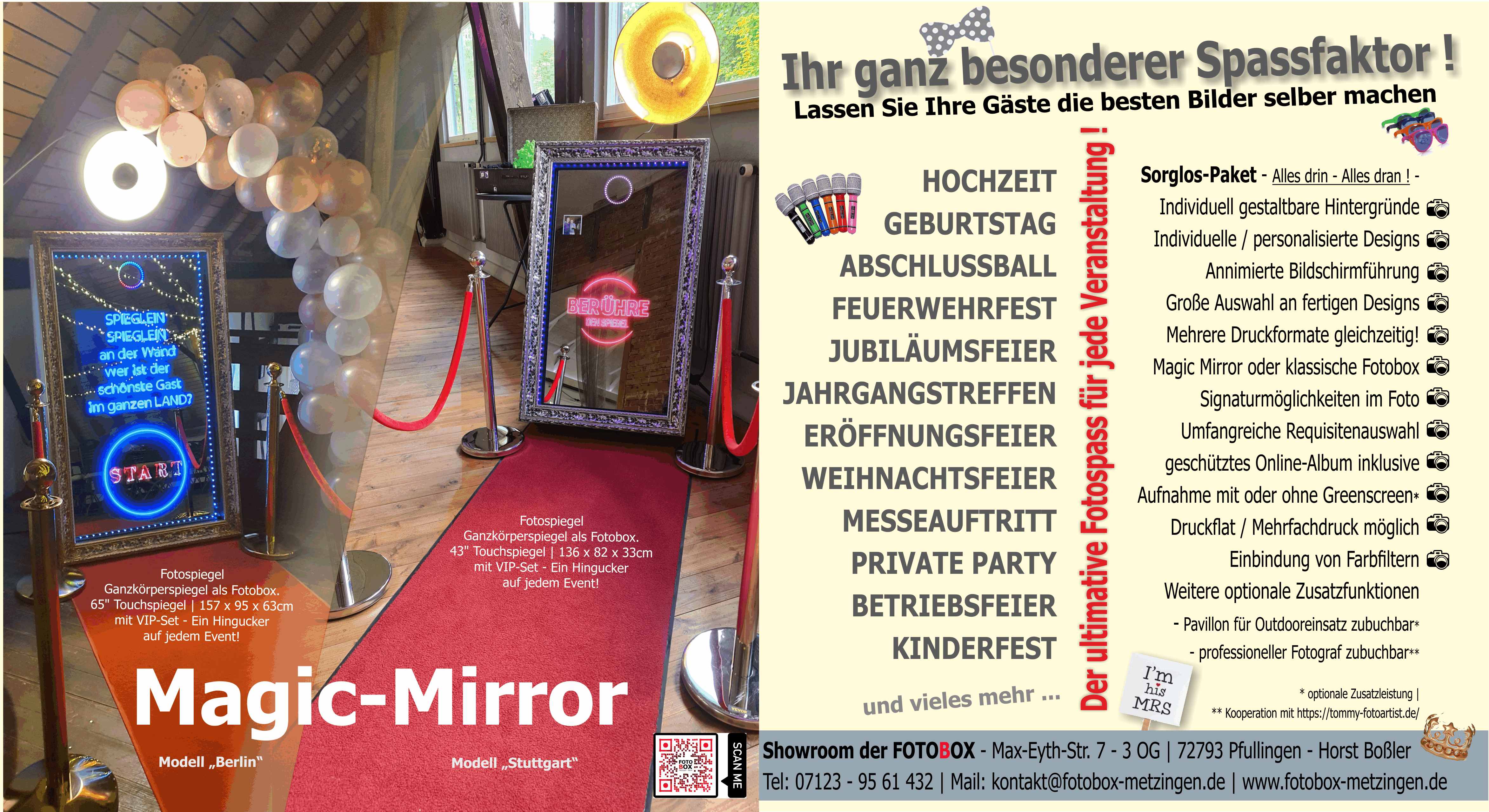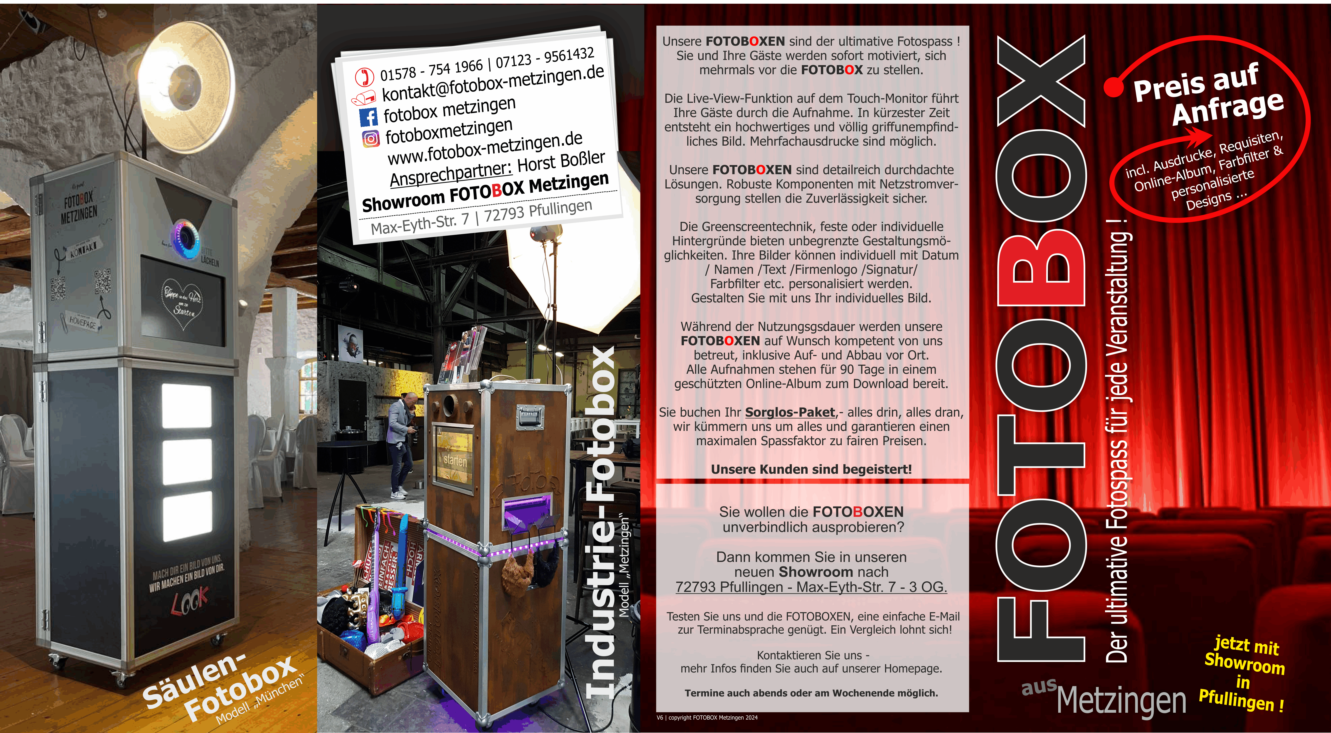 Unsere FOTOBOXEN und Magic Mirror sind keine Importgeräte, sondern "made in germany", entsprechen sicher, zuverlässig und robust sind sie gebaut. Hochwertige Hardware kommt zum Einsatz und garantiert einzigartige, langlebige und gute Ausdrucke. Wichtige Faktoren, wenn es darum geht Vergleiche anzustellen.